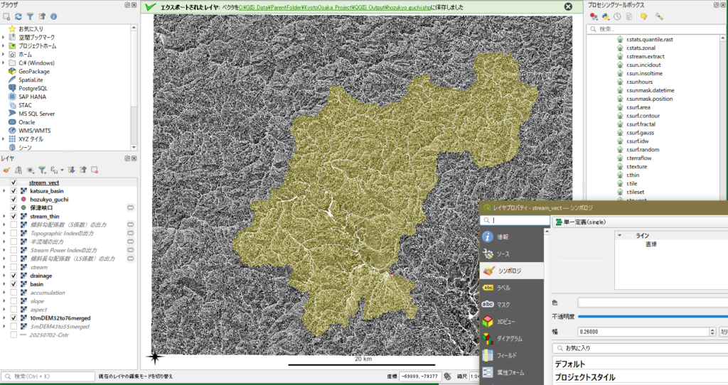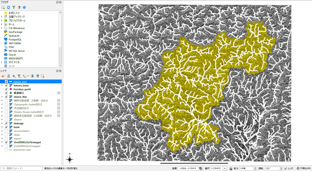 fillが必要というGeminiのアドバイスがあったが,誤り。この流域範囲を示すkatsura_basin2にはfillの必要性は全くない。