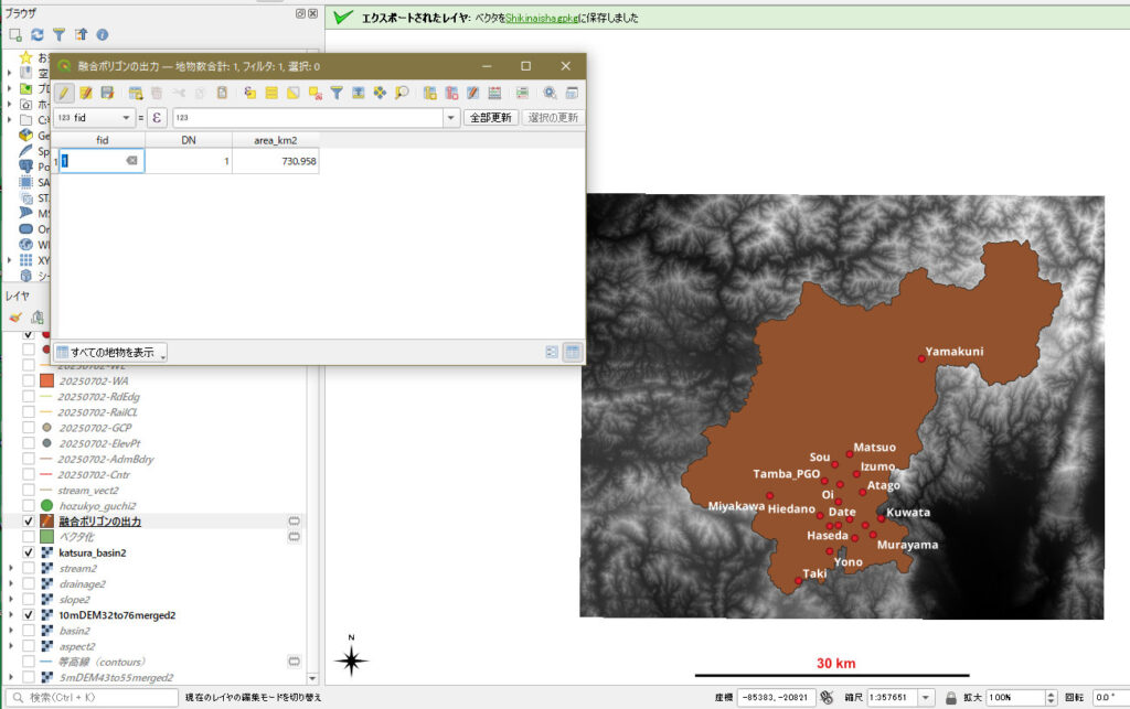 GIS世界を構築するには,一つ一つ積み上げる必要があって,この程度ではあるが,確認をしていかないと,後に痛い目に会う。